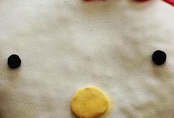 Avec ce surplus, j'ai fait le nez (en ajoutant du colorant jaune) et le noeud (en ajoutant du colorant rouge). Pour les yeux, ce sont des rondelles de réglisse, et pour les moustaches, ce sont des Mikado.