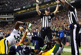 1 ) Faux arbitres, fausse victoire : C’est fou ce qu’on oublie vite, mais le seul sujet de conversation en septembre n’avait aucun lien avec les performances des joueurs sur le terrain. Les arbitres de remplacement, plus précisément les gaffes des arbitres de remplacement occupaient toute la place. La NFL s’entêtait à dire que tout allait bien jusqu’à ce que la seule conclusion possible survienne, soit qu’une décision d’un zébré soit directement responsable du résultat d’une partie. C’est arrivé en plein Monday Night Football, et ce sont les Packers qui en furent les victimes. L’œil au beurre noir fut gigantesque pour la NFL et quelques jours plus tard, les vrais arbitres étaient de retour, salués par des ovations! Ovationner un arbitre, ça va contre tous mes principes!!! Au moins, Green Bay sera malgré tout de la danse de janvier (sauf qu’ils auraient eu un bye au premier tour n’eut été du vol) tandis que personne ne pourra accuser les Seahawks de ne pas y figurer de façon légitime.