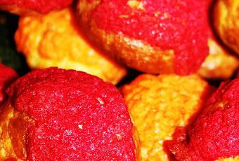 Pour la couverture des choux:1-Faites ramollir le beurre en pommade et ajouter la cassonade et la farine.Séparez la pâte obtenue en deux ou 3 ou 4 suivant le nombre de couleur que vous voulez faire.