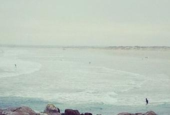 Le vent caresse les bonnets, les coquillages miniatures crissent sous les chaussures, les surfeurs, tels des Playmobils, vont et viennent le visage rougi par le sel et la houle, le ciel change de couleurs à chaque instant.