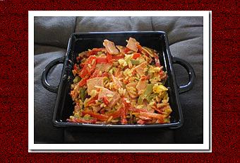 Faire revenir les poivrons et le jambon coupé en petits morceaux.