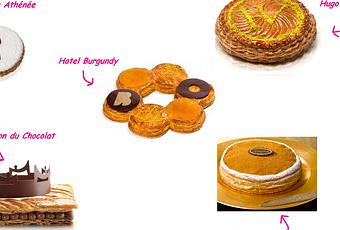 Ma préférée, celle signée du pâtissier de l'Hôtel Burgundy, ravira les indécis : 6 parts de galettes, et aux 3 parfums : frangipane, pomme-confiture de lait et griotte-pistaches
