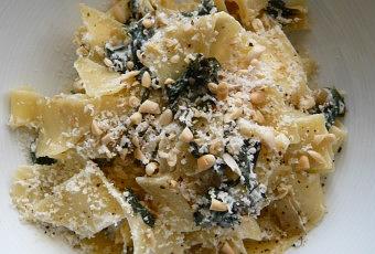En hiver, on a envie de plats qui réchauffent, font du bien au corps et aux papilles, nourrissent mais sans excès car on n'a pas forcément plus faim (sauf si on passe beaucoup de temps dehors). Les pâtes font partie de ces envies et celles-ci sont arrivées sur la table d'une drôle de façon. Monsieur avait repéré une recette d'omelette dans Zeste Magazine, avec blettes, parmesan et ricotta. Finalement, au lieu de ça, il a eu la bonne idée de transposer et adapter la recette à des pâtes et voilà dans notre assiette des pâtes hivernales aux blettes, parmesan, ricotta et pignons. Moelleux, savoureux et régénérant...