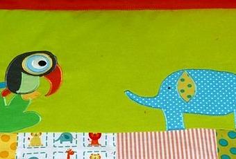 J'avais déjà réalisé il y a quelques temps de cela un ensemble bébé sur le même thème pour des jumeaux, et plus tôt encore, un autre, toujours autour des animaux de la jungle, pour un petit garçon. Le sujet ayant déjà été traité, de façon très colorée dans les deux cas, ces deux mamans avaient de quoi s'inspirer pour leurs projets respectifs.