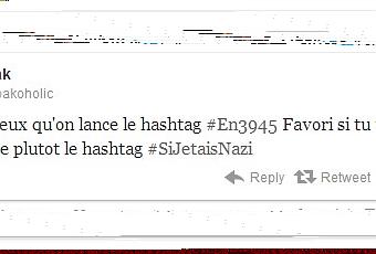 Twitter est à la mode en France et compte de plus en plus d'utilisateurs, 2012 est un record dans les inscriptions, je n'ai plus les chiffres en tête mais on doit frôler les 6 millions de twittos dont beaucoup de jeunes qui découvrent un nouveau joujou plus rigolo que le désormais obsolète MSN. C'est plus rigolo car tout le monde peut lire vos tweets, les copains, les copains des copains et ainsi de suite.Le problème c'est que ce nouveau terrain de jeu est en train de devenir pourri par quelques abrutis qui comportent sur Twitter comme dans leurs cour d'école ou au pied de leurs cités. Ceux qui parlent de respect mais qui ne pensent qu'à nuire, ceux qui gueulent dans les espaces publiques ou qui mettent leur musique de merde sur leur smartphone pour en faire profiter tout le monde, ceux qui passent leur temps à insulter les autres et à faire chier le monde. Parfois j'en ai en bas de chez moi, je les avais déjà recadré une fois quand ils s'amusaient à casser des bouteilles de bière sur le sol, pour rire. Très marrant.Sur Twitter le jeu depuis quelques semaines c'est les hashtag qui puent, on avait eu les #SiMonfilsEstGay qui était pour ces abrutis la suprême honte et depuis peu le summum du hashtag qui mériterait LA grosse baffe dans la gueule à ceux qui l'utilisent: #SiJétaisNazi.Il n'y a plus de limite avec certains individus comme ce Sipak qui ne doivent même pas respecter leurs parents (les "darons"), Twitter va enfin ouvrir un bureau en France et j'espère qu'avec le gouvernement, il y aura les moyens de leur faire mal, mineurs ou pas, parce qu'il y en a ras le cul de voir ces tas de merde traîner sur la toile.