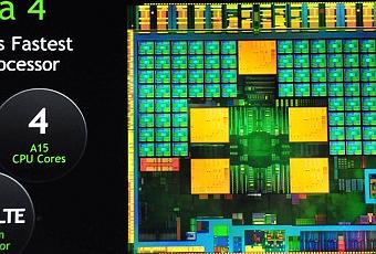 Pour les détails techniques, on retrouvera une architecture ARM A15, 4 coeurs + 1 pour les opérations peu consommatrices un processeur graphique avec pas moins de 72 unités de calculs (soit six fois plus que son prédécesseur). L’objectif d’un tel SOC est de permettre outre un décodage natif de vidéos de résolution de 4K une fluidité dans les applications multitâches sans précédent. Le CEO de Nvidia n’a néanmoins présenté aucun chiffres sur la fréquence de calcul du processeur.
