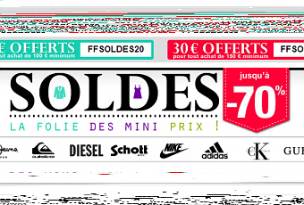 - 30₏ offerts pour tout achat de 150₏ minimum avec le code FFSOLDES30 (pour tout achat de 150 ₏ minimum). Coupon utilisable sur une seule et unique commande, limité aux 1000 premières utilisations.