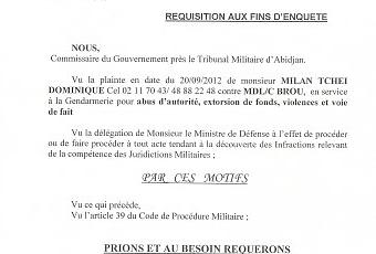 Que le Tribunal Militaire d'Abidjan se penche sur le cas de l'affaire de la séquestration et extorsion de fonds du jeune chef d'entreprise de Yopougon avec menaces, signée des mains du procureur depuis le 05 octobre 2012 et qui traîne encore...que justice soit rendue là aussi