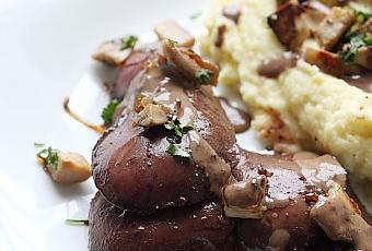 5- Lorsque les rognons sont cuits (à peine rosés), servez-les avec la purée et les cèpes.