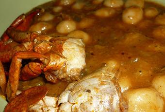 7- Ajoutez les crabes, et laisser à feu doux encore 10 min. Si vous avez une cuisinière électrique, n'oubliez pas de sortir la casserole du feux sinon la sauce va continuer a s'épaissir.