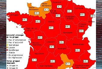 Avec plus de 500.000 visites aux médecins généralistes en 3 semaines et près de 200.000 nouveaux cas en une semaine, l'épidémie de grippe en France, bien au-delà du seuil épidémique pour la 3ème semaine consécutive, se renforce et s'installe sur l'ensemble du territoire. Seule bonne nouvelle, l'épidémie de bronchiolite à VRS (virus respiratoire syncytial) diminue, notamment en Ile-de-France, dans les régions du sud-ouest et du nord-est de la France. Le niveau d'activité des syndromes grippaux devrait continuer d'augmenter.