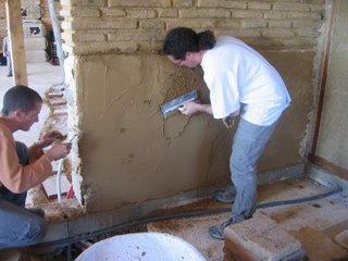 Les briques commencent à sécher. On a démoulé la moitié supérieure du cadre.