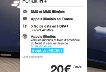 L'opérateur Joe Mobile propose dès aujourd'hui, le forfait H+ à 20 €/mois. À compter de ce jour, le forfait 3Go devient le forfait H+ ! Au menu, plus de rapidité grâce à la technologie HSPA+ ; vous pourrez dorénavant surfer jusqu'à 42Mb/s avec un équipement compatible. De plus, dès le 17 janvier, le forfait H+ intègrera les appels vers l'international, avec les appels vers les fixes et mobiles d'Amérique du Nord et les fixes de 50 destinations d'Europe et des DOM en illimité.