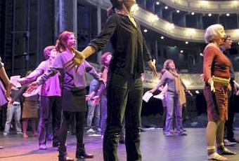 “On va commencer par un petit échauffement de la voix avant d’apprendre la choré, enlevez vos chaussures”, lance Nadia Shnock aux bénévoles qui lanceront samedi, lors d’une “Grande Clameur”, les festivités d’ouverture de Marseille, capitale européenne de la culture (MP 2013). Au théâtre du Gymnase, ils sont une trentaine à répéter la chorégraphie du spectacle “Mireilles” : c’est un “vrai hommage” à l’Avignonnaise Mireille Mathieu, à travers la chanson, datant de 1980, “Une femme amoureuse” (adaptée de “Woman in love” de Barbra Streisand), explique l’artiste belge Nadia Schnock aux figurants.