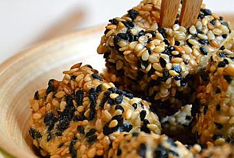 - Un à un, rouler les dés dans la farine, puis dans l'oeuf, et enfin dans les graines.