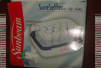 C'est de la marque SUNBEAM et comporte 20 bigoudis, dont 6 gros, 8 moyens, et 6 petits, y'en a pour tout le monde, mais à mon avis, je ne vais utiliser que les deux premières catégories, vu que les petits sont vraiment petits, sauf si je veux un afro! Je l'ai testé le jour où je l'ai eu sur une mèche de cheveux et ça marche très bien, la boucle tient bien et le bigoudi ne brûle pas les doigts comme je le craignait...j'attends de me défriser pour le tester sur la tête entière (j'ai hâte!!).