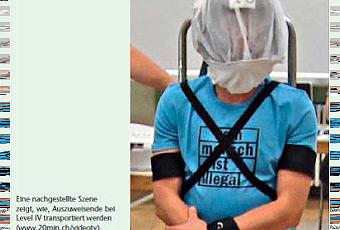"Niveau 4: La personne à rapatrier est susceptible d’opposer une forte résistance physique; elle ne peut être transportée qu’à bord d’un vol spécial; elle est escortée par deux agents de police au moins; les moyens de contrainte prévus pour le niveau 3 peuvent être utilisés. Ces rapatriements par vols spéciaux ne sont ordonnés qu’en dernier recours. Ils sont très controversés. "