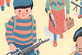 Art Spiegelman commente : »I did this New Yorker cover in 1993. Colombine happened in 1999, Newtown in 2012, nearly 20 years later. My wish for 2013: let Newtown be remembered as the turning point—I’m hoping that kids with guns can become ironic again. »