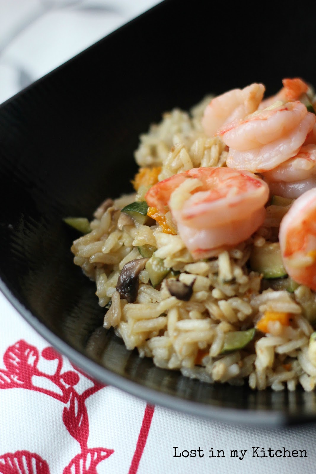 Riz aux crevettes et petits légumes (pour 4 personnes)