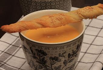 Pour se réchauffer pas mieux qu'une soupe , bien parfumée celle ci met en valeur la patate douce que finalement nous consommons assez régulièrement . Elle est parfumée avec le gingembre et le citron vert,et à peine sucrée avec le miel . J'ai réalisé avec le reste de pâte feuilletée de la galette des torsades bien croustillantes pour l'accompagner .
