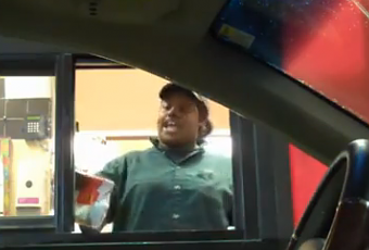 Une bien bonne idée que voila ! Un homme, ma foi astucieux, a eu la bonne idée de se cacher derrière un siège fabriqué maison dans le but de contrôler sa voiture mais sans se faire voir une fois arrivée au retrait de sa commande chez MacDonald’s. Le tout est bien entendu filmé et c’est avec joie que l’on peut déguster l’étonnement voire la crainte des serveurs à la caisse. Enjoy !