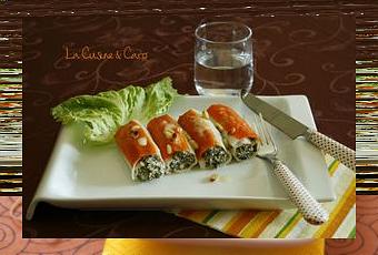 3. Dérouler les bâtonnets de surimi puis disposer le mélange ricotta épinards et rouler. Les mettre ensuite dans un plat à gratin beurré.