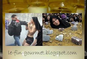 1. La scène de gauche se déroule en France, dans un pays laïc et civilisé, la scène de droite se déroule dans un pays barbare où les intégristes dont la loi.
