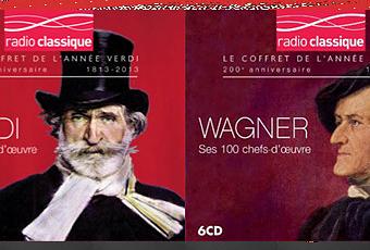 Radio Classique a sorti aujourd’hui 2 coffrets de 6 CD rassemblants les cent plus grands chefs-d’oeuvre des deux monstres sacrés de la musique lyrique du XIXe que sont Verdi et Wagner.