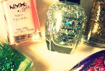 NYX Enchanted Forest - 1,99€ NYX Naked Pink - 1,99€ Kleancolor Sliver Star - 1,50€ NYX Gilded Glitter - 1,99€ Kleancolor Chunky Holo Purple - 1,50€ NYX Dreamy Glitter - 1,99€