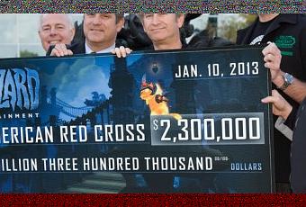 Blizzard, connu pour sa générosité envers les associations caritatives, a rassemblé 2,3 millions de dollars pour les victimes de l’ouragan Sandy. Ceci grâce au succès de l’opération de soldes sur la mascotte « Chaton de braise » dont les bénéfices ont intégralement été reversés à la Croix-Rouge américaine. L’argent va servir à fournir des vivres, des abris et un soutien aux victimes de la catastrophe.