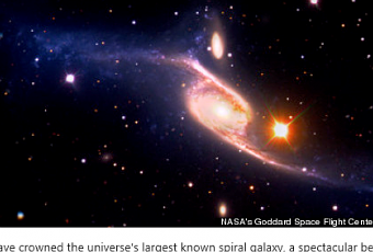 Les astronomes ont couronné la découverte de la plus grande galaxie spirale connue de l'univers,un géant spectaculaire cinq fois plus grand que notre propre Voie Lactée.