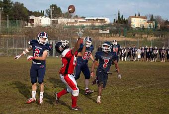 Pour ce retour de la "photo de la semaine", nous allons à Montpellier pour le championnat régional Languedoc Roussillon. Les Hurricanes B faisaient leur entrée dans la compétition et l'ont emporté 44 à 6 face aux Vypers de Béziers. C'est pourtant un Biterrois qui est mis en vedette sur ce cliché de Ghislain Guenard. Une photo prise lors de la dernière action du match et pour laquelle, je cite Ghislain, "pour le suspens je ne dirai pas si la passe a été complétée"!