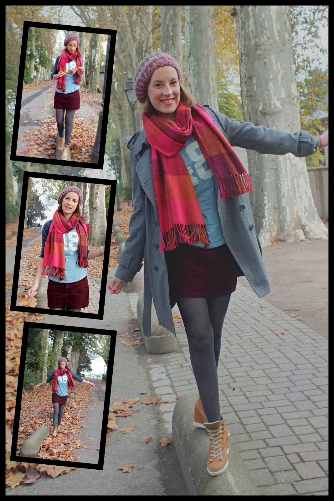 Baskets compensées, jupe en velours, maillot en coton, une petite tenue dynamique pour débuter la semaine et faire mumuse avec les feuilles mortes (pour les besoins du post bien entendu...). On oublie pas les couleurs, s'il-vous-plait, qui nous donnent toujours meilleure mine :) !