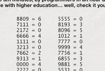 Ce problème peut être résolu par un enfant de maternelle en 5 ou 10 minutes, par un programmeur, en une heure et par des gens avec un haut niveau d'études en...et bien, vérifiez vous-mêmes.