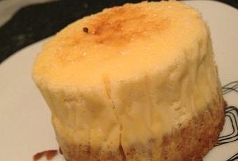4/ Verser la pâte dans les moules, puis faire cuire entre 30 et 40 minutes, il faut que le dessus du cheese-cake soit coloré mais pas trop, juste un peu (comme sur ma photo). Le sortir, le laisser refroidir, puis le placer au frigo pendant 6 heures, le gâteau se déguste très frais. Voilà c'est prêt!