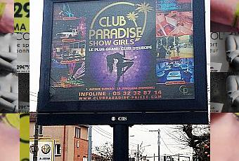 Il est à noter que, pendant ce temps, la discothèque « Club Paradise », plus grand bordel d’Europe situé à la frontière espagnole, à la Jonquera, s’est offert une immense campagne 4x3 à Toulouse dans l’indifférence générale et avec la bénédiction de CBS Outdoor. Or là, c’est véritablement de traite d’êtres humains qu’il s’agit, sauf si l’on considère que le sort des 300 filles de l’Est qui travaillent là-bas est plus enviable que celui de la cliente de Keep Cool volontaire pour poser sur l’affiche.