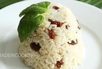 Au top pour un accompagnement- Voici la recette du riz au lait de coco et aux raisins secs que j'avais utilisé pour accompagner les brochettes de Coaching Bien-Être.