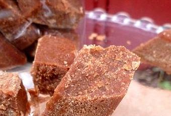 Mettre tous les ingrédients dans une grande casserole (le mélange va épaissir, monter... donc prenez une grande casserole). Porter le tout à 112°C. Sans réellement regarder ma montre, j'ai du mettre environ 20 à 25 minutes à atteindre cette température. Le mélange passe par plusieurs phases avant d'épaissir et de bien colorer. Une fois la température atteinte, verser dans un moule silicone ou autre recouvert de papier sulfurisé. Remuer le mélange pour qu'il devienne sableux. Laisser reposer 20 à 30 minutes pas plus avant de coupe le fudge en morceaux. Le mien avait déjà bien refroidi et je n'ai pas pu couper des carrés bien nets. Laisser refroidir complètement avant de mettre en sachet. On le conserve environ 3 semaines dans une boîte hermétique, enfin si vous arrivez à attendre 3 semaines...