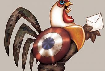 * basé sur le double sens du mot "Gallus" signifiant à la fois "coq" et "Gaulois".