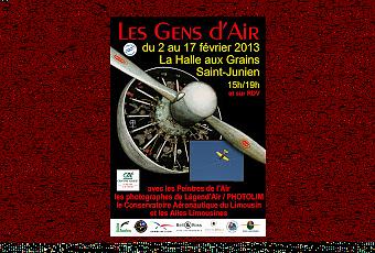 Exposition "Les Gens d’Air" du 2 au 17 février 2013 à la Halle au Grains de Saint-Junien (87), avec les Peintres de l’air, les photos de Photolim87 sur Legend’Air, leconservatoire aéronautique du Limousin, et les Ailes limousines…