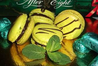 Je continue mon expérience "macarons" pour lesquels j'ai choisis une ganache au chocolat noir avec une saveur de menthe. Comme j'adore la saveur de la menthe , il fallait que je teste l'association avec le chocolat.Un macaron où se mèlent la douceur du chocolat et la fraîcheur de la menthe..... un vrai régal !