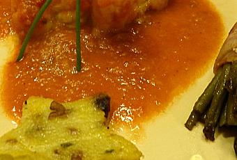 Au menu : Lotte à l'américaine, fagot de haricots et étoile de polenta aux marrons et ciboulette...