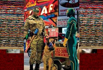 On y voit le Colonel Jim Carrey face à Kick-Ass, joué par Aaron Taylor-Johnson.