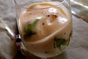 - On peut envisager toutes les associations, pour faire manger des fruits à ceux qui n'aiment pas trop se salir les doigts... comme pour l'hiver ananas et écume vanille/coco, mangue et écume citron vert/coco.