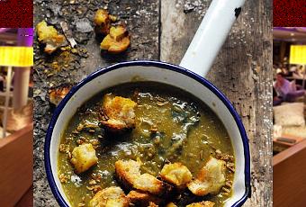 Ajoutez les lentilles, mélangez et couvrez de bouillon de légumes. Portez à ébullition et faites ensuite blobloter jusqu'à ce que les lentilles soient bien cuites (reportez vous aux indications de l'emballage, les cuissons peuvent être assez différentes). Quand les lentilles sont presque cuites salez et poivrez.Pendant ce temps portez à ébullition une grande casserole. Dès que l'eau est bouillante plongez-y les épinards et laissez-les deux ou trois minutes. Sortez-les ensuite et égoutez-les bien.Coupez les tranches de pain en cubes grossiers. Faites chauffer le beurre dans une poêle et ajoutez quelques belles pincées des épices restantes et les cubes de pain et mélangez bien le tout. Retirez du feu.Quand les lentilles sont à point, mixez-les finement. Coupez les épinards en lanières et mélangez les avec la soupe.Servez la soupe avec les croutons et les épices restantes.Mais pourquoi, je sens que ça va être un temps à soupe encore un moment ! Est-ce que je vous raconte ça…