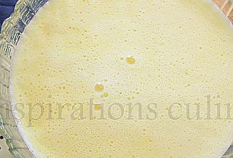3. Verser un peu de lait dans le mélange oeuf-sucre tout en fouettant et ajouter petit à petit le reste de lait.