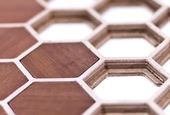 Tel un nid d’abeille chaque alvéole de la table peut être bouchée grâce à de petits hexagones de bois parfaitement compatibles, un véritable jeu de puzzle s’offre à vous en fonction de vos besoins.