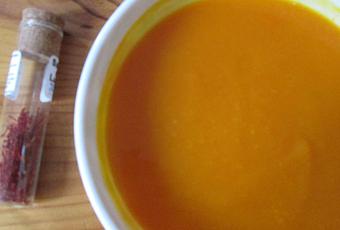 Eplucher le potimarron et enlever les graines. Découper le potimarron en morceaux de taille similaire. Peler la carotte et la détailler en grosses rondelles.Placer les légumes dans une grande casserole et recouvrir d'eau à hauteur. Faire cuire à petit bouillon jusqu'à ce que les légumes soient tendres (environ 20 min). Hors du feu ajouter l'eau safranée. Mixer la soupe et rectifier l'assaisonnement.