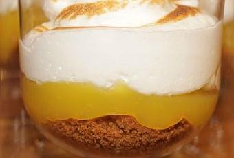 Versez la crème au citron sur les biscuits, puis à l'aide d'un poche à douille, dressez la meringue sur la crème.