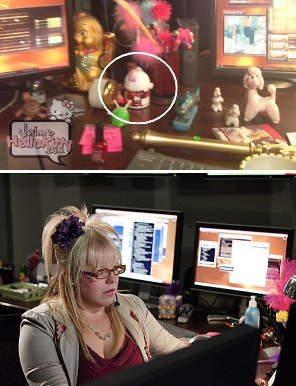 Voilà que Hello Kitty s'incruste dans ma série préférée , Esprits Criminels, et plus exactement ... sur le bureau de Penelope Garcia ( Kirsten Vangsness de son vrai nom ) ! Eh oui , parmi ses nombreuses babioles kitschs , on remarque vite cette boite de chewing gum Hello Kitty , qui sera peut-être visible à l'écran , qui sait , durant des épisodes de la saison 8 actuellement en production ^^